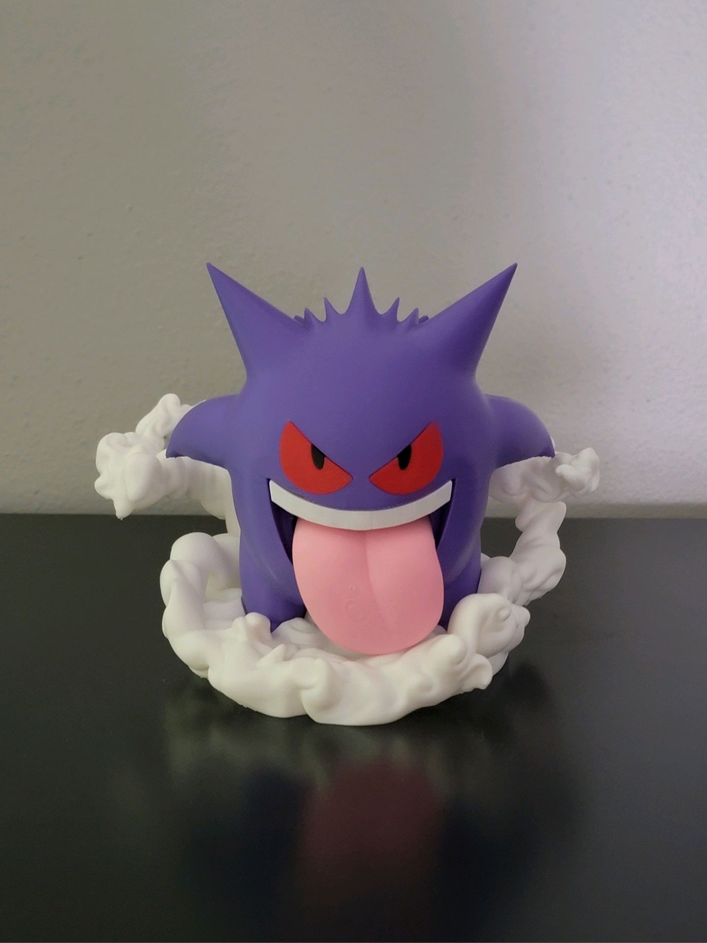 Gengar – Pokémon hệ Bóng Ma / Độc, nổi tiếng với nụ cười tinh nghịch và chiếc lưỡi dài đặc trưng, nay được tái hiện cực sống động qua mô hình in 3D chi tiết cao.